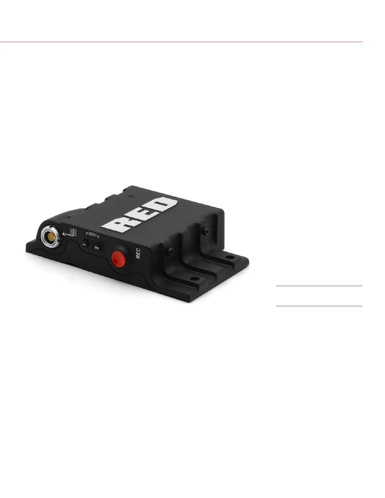The RED MINI-MAG SIDE SSD has the same EVF/LCD LEMO connector, user keys, and REC button as the