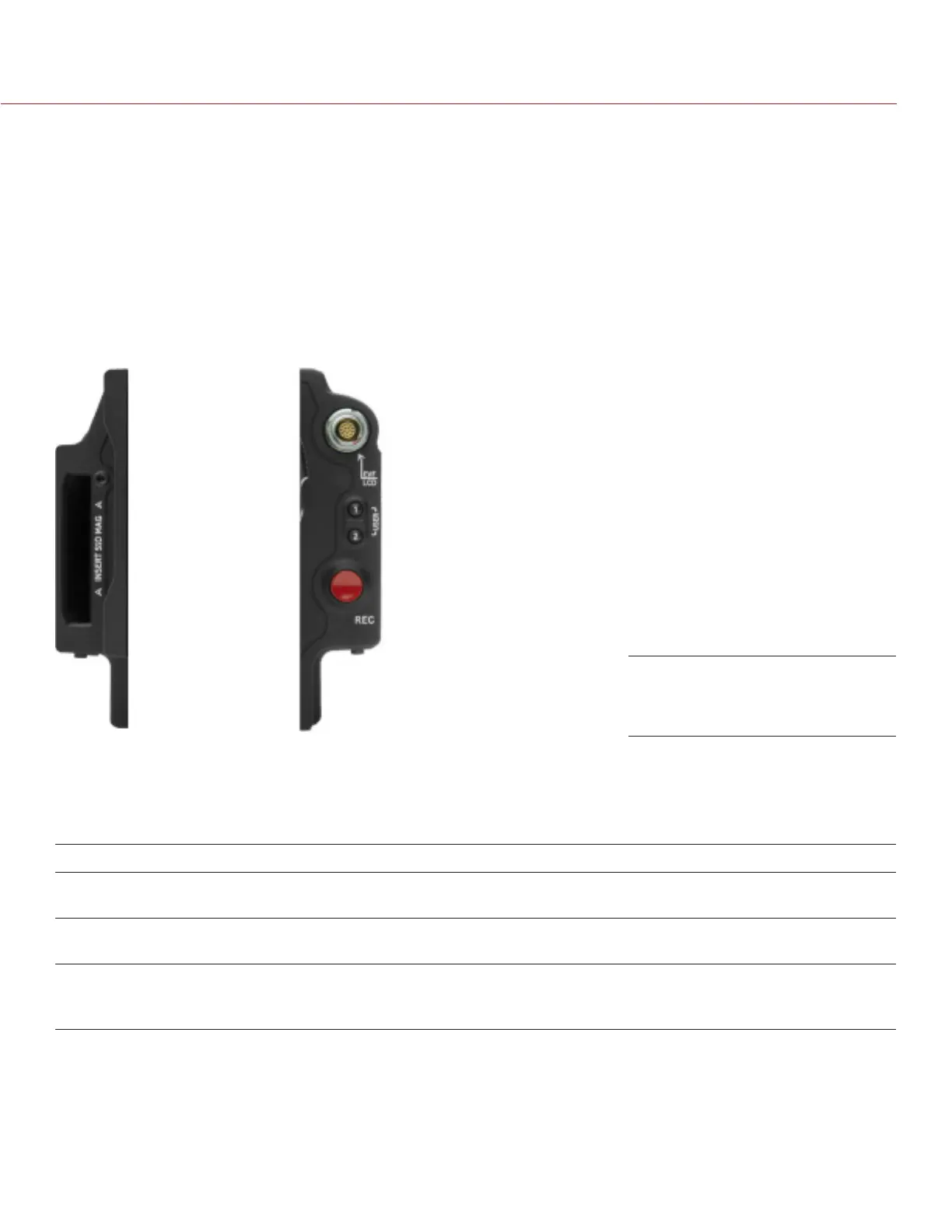 The RED MINI-MAG SIDE SSD and DSMC 1.8" SSD SIDE MODULE have the control buttons described in the