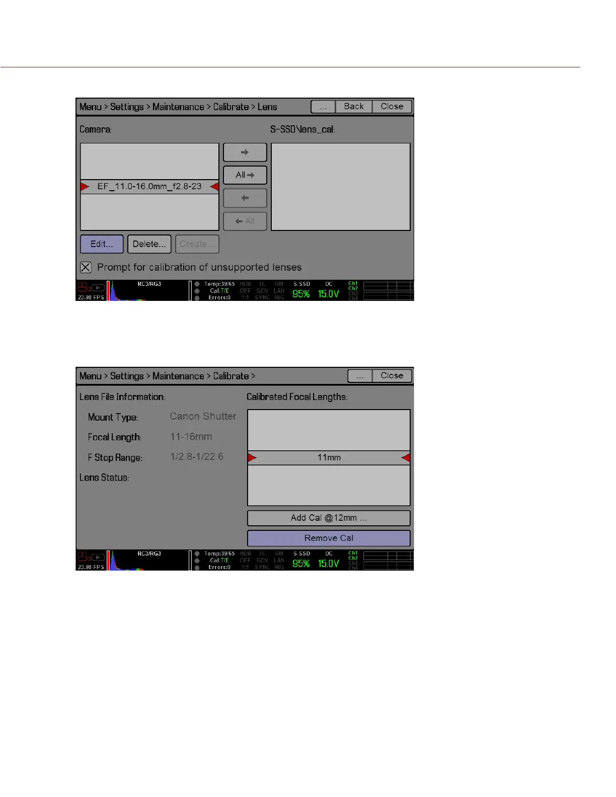 NOTE: If you calibrate a focal length that has already been calibrated, the new files overrides the previ-