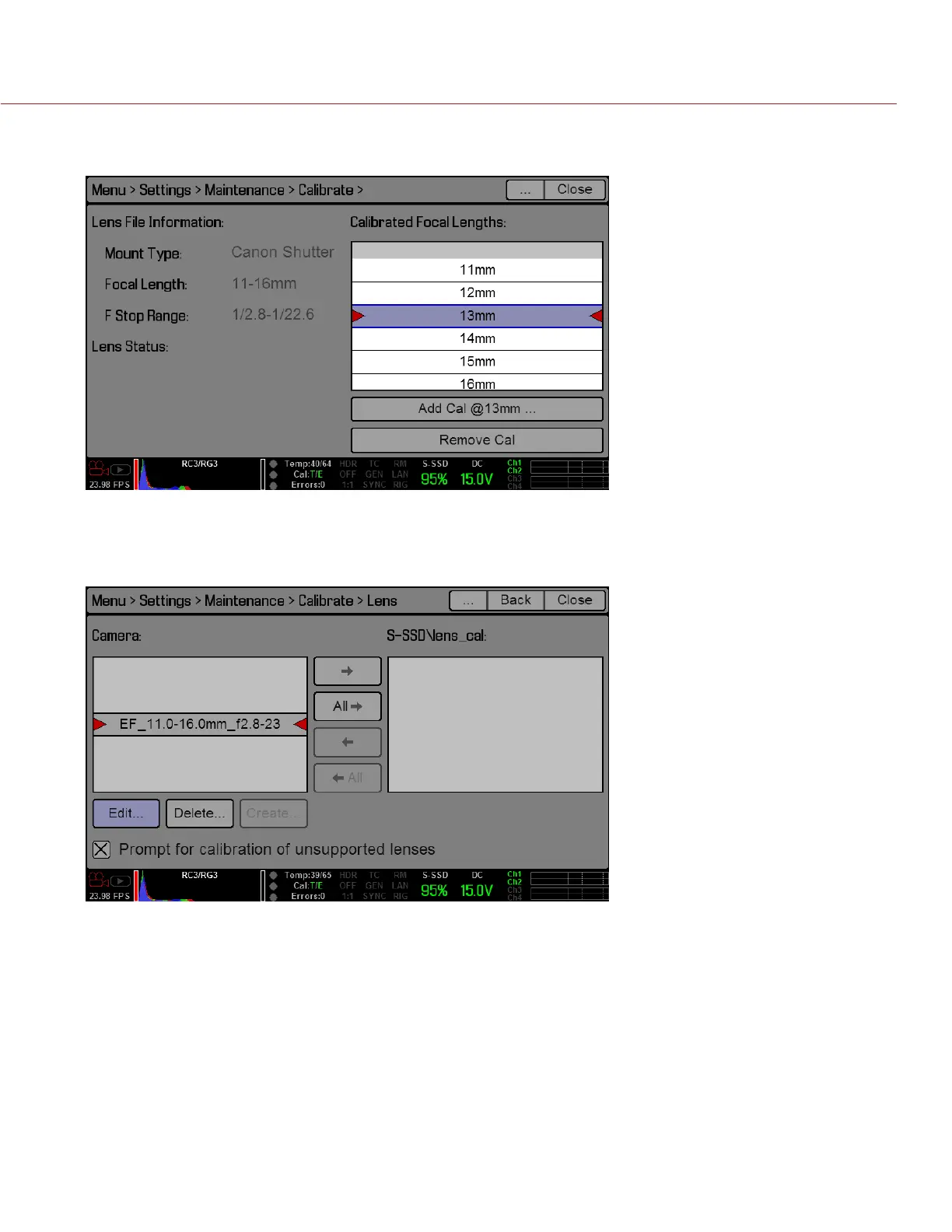 7. Repeat Step 6 for each focal length of the lens.