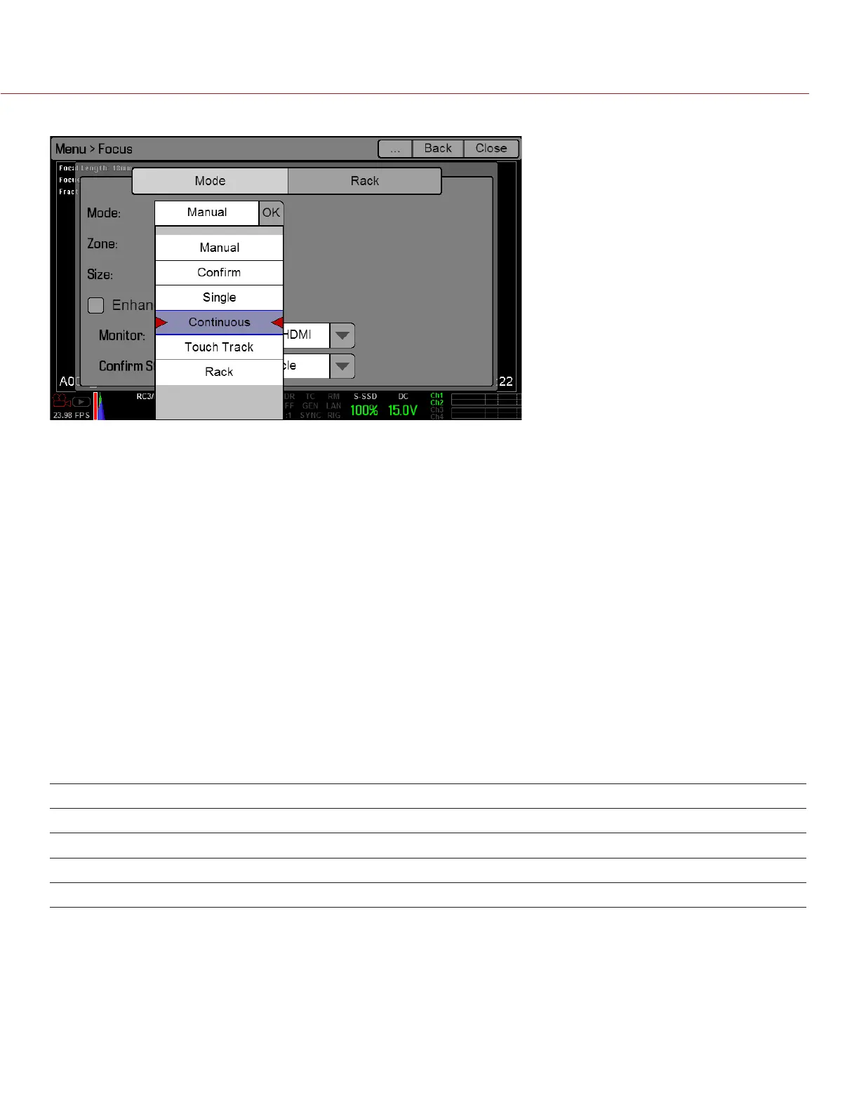 the Focus Mode options in order.