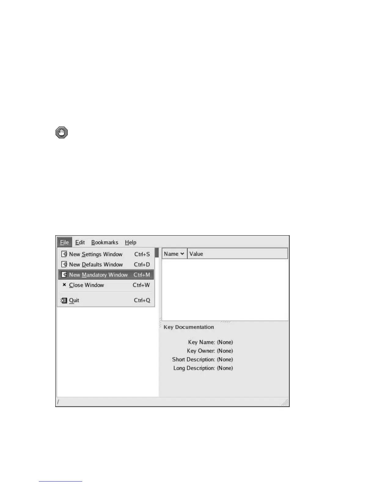 mandatory settings by opening a special GConf editor window. For example, to set mandatory