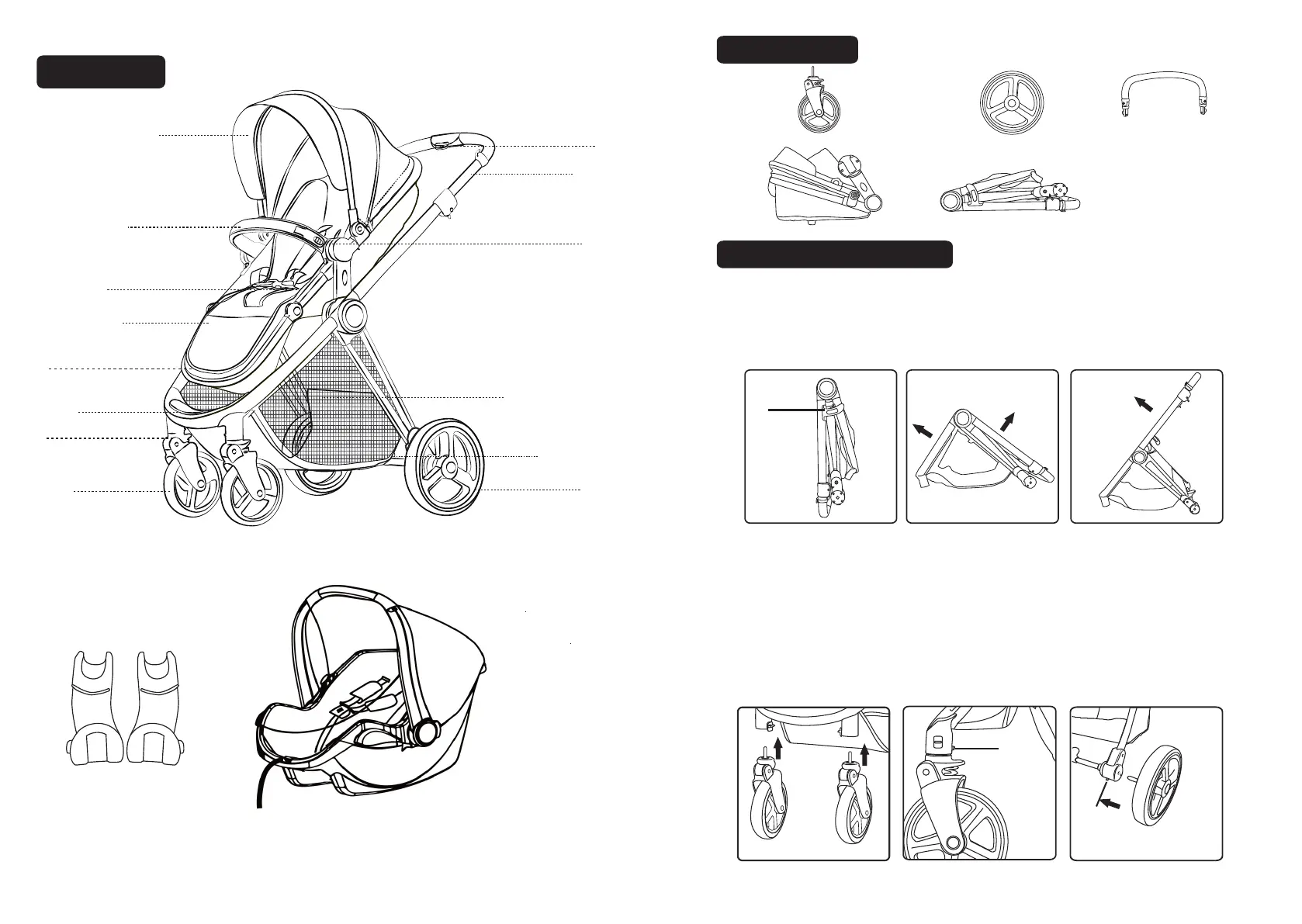 2. Push the metal stems of the front wheels upwards into the front wheel holders until they click in