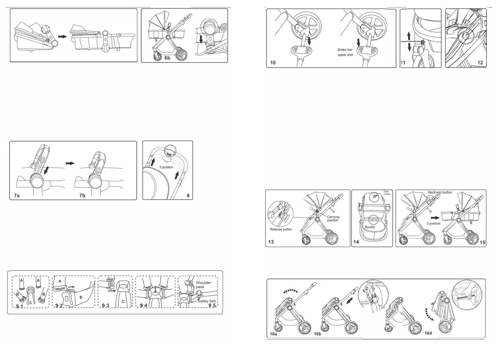 and rotate the seat unit all the way forward. Fig 16a. Lower the handle height. Fig 16b. Press in the