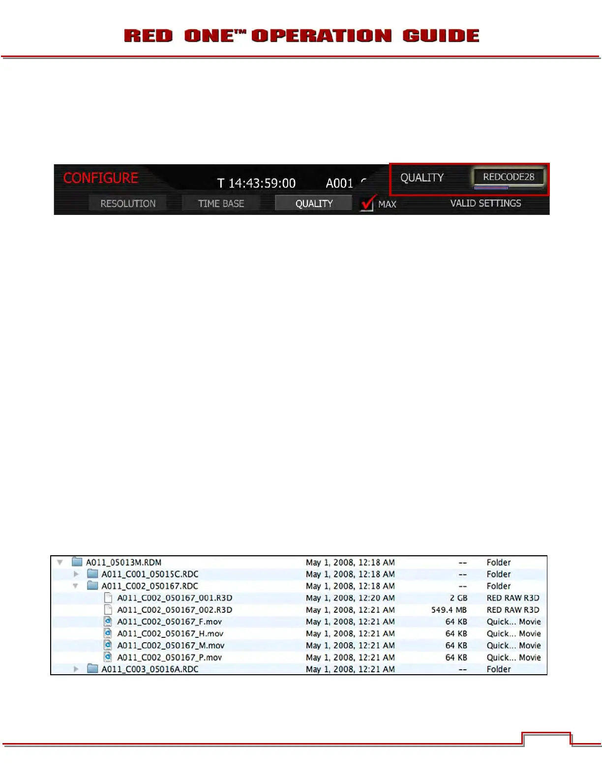 NOTE: Choosing REDCODE 36 limits available frame rates and resolutions to CF cards.