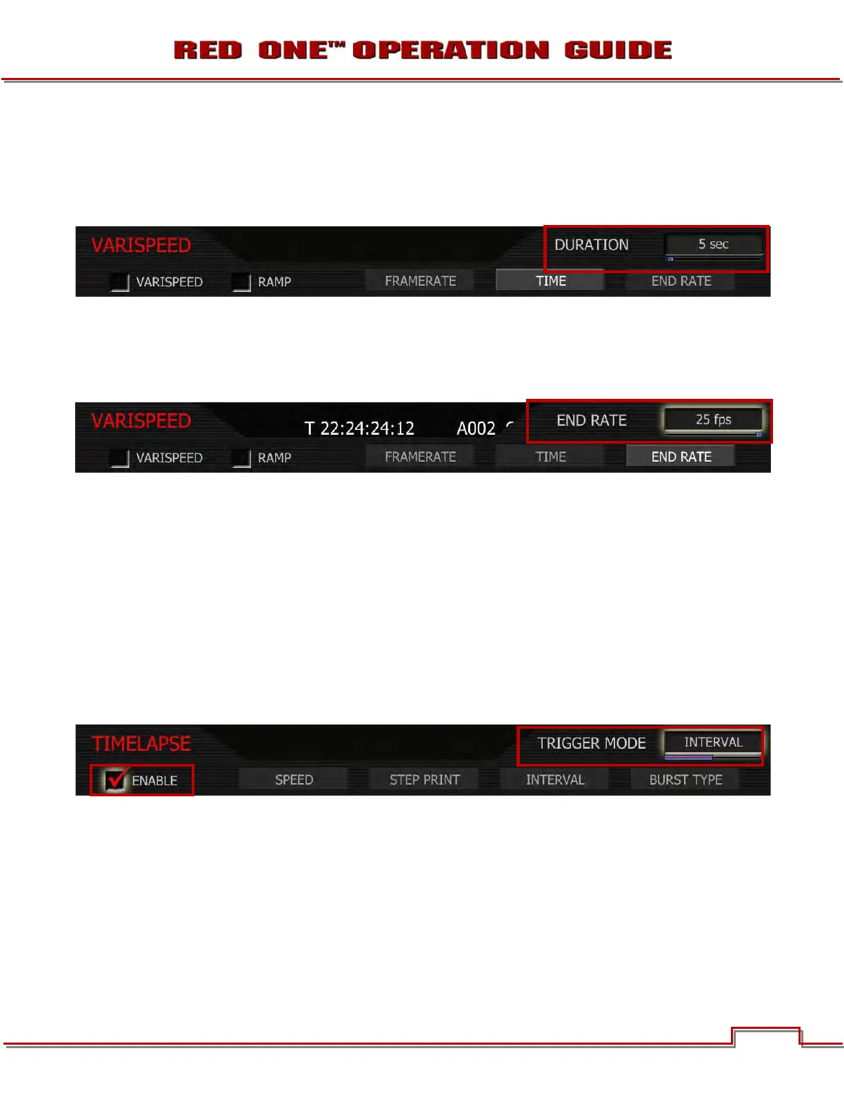 TRIGGER MODE: Specifies if the camera is to use a fixed Interval of time or wait for a side record com-