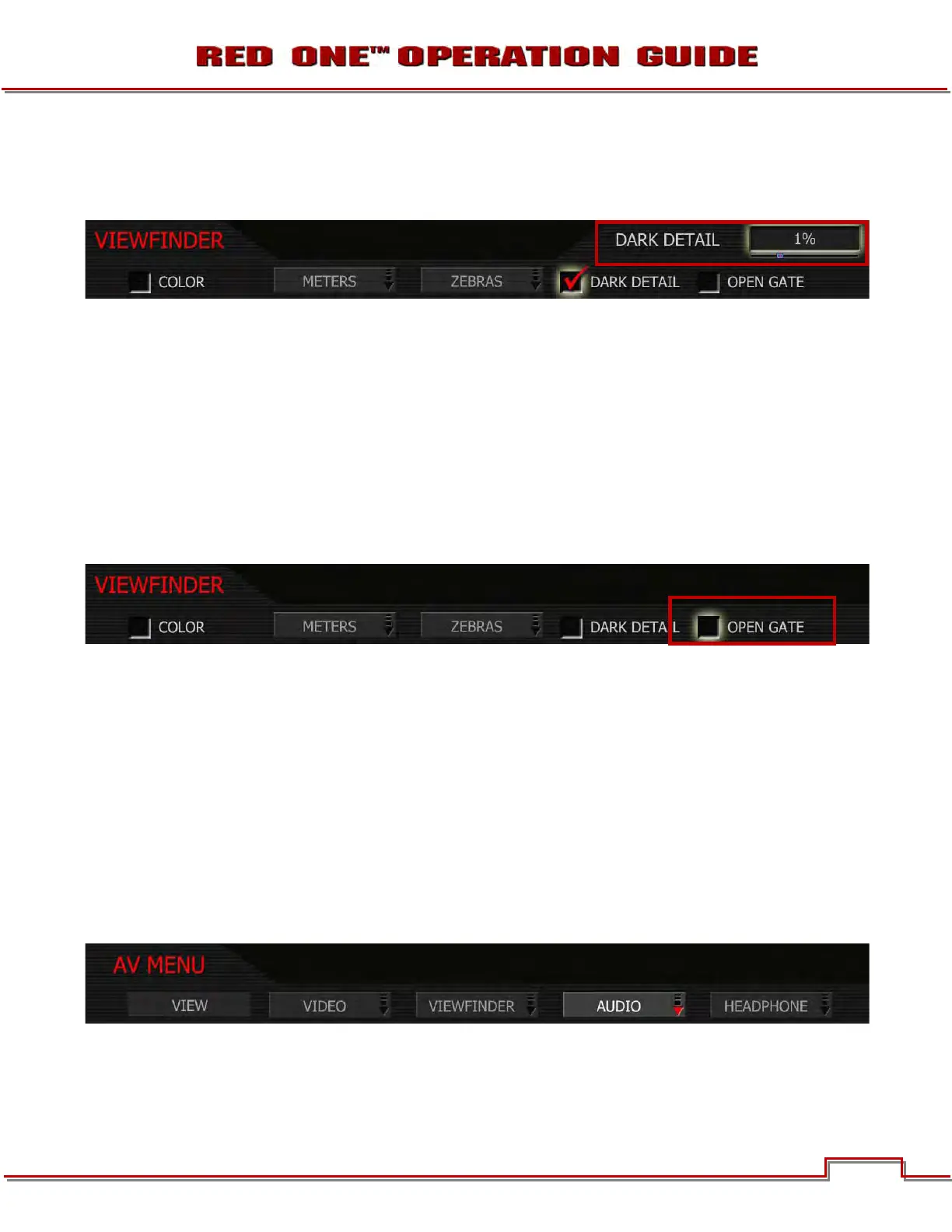Dark Detail allows the RED EVF to view addition information (detail) in dark areas of a scene, or in dimly