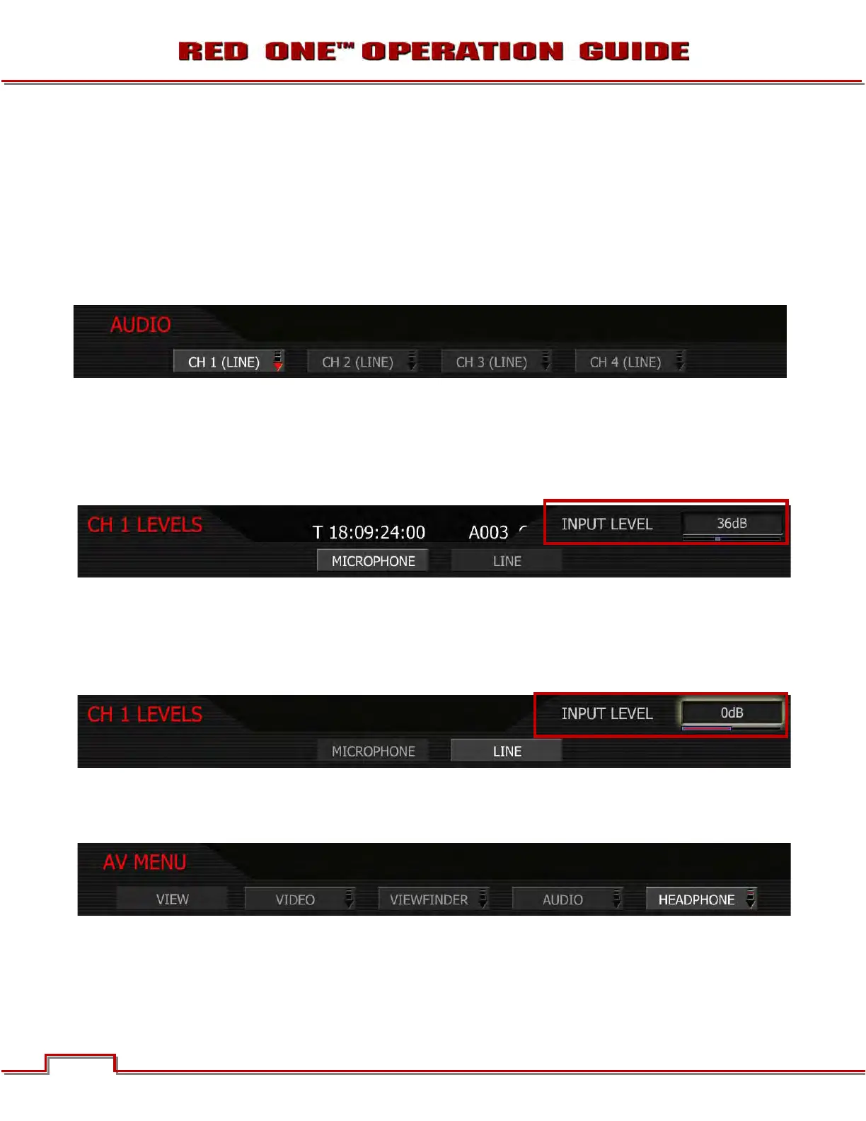 To assist with audio operating reference level setup, the camera provides a color-coded 3dB per division
