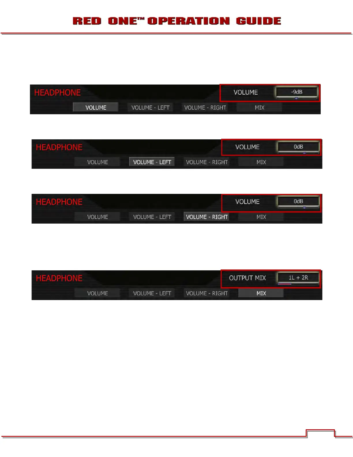 MIX: Selects which audio channels feed the left and right side headphone outputs.