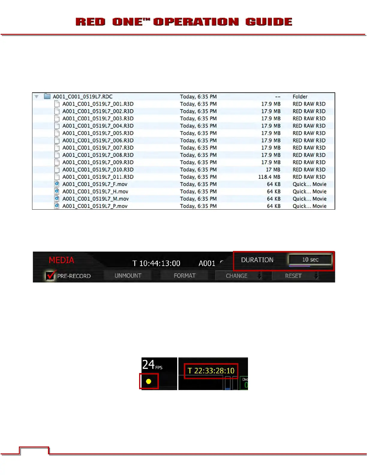 NOTE: On playback on camera or in the RED Alert! or any QuickTime application, these eleven indi-
