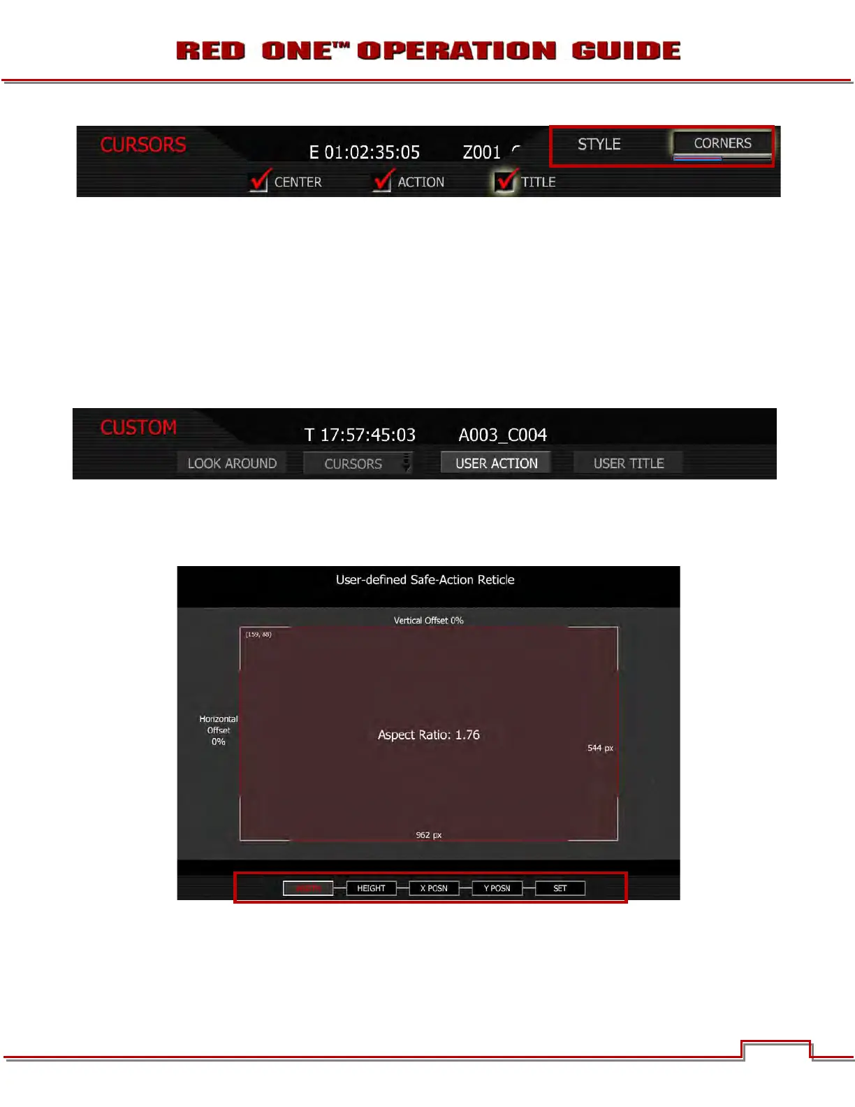 NOTE: The camera will display the aspect ratio of the guide based on these two values.