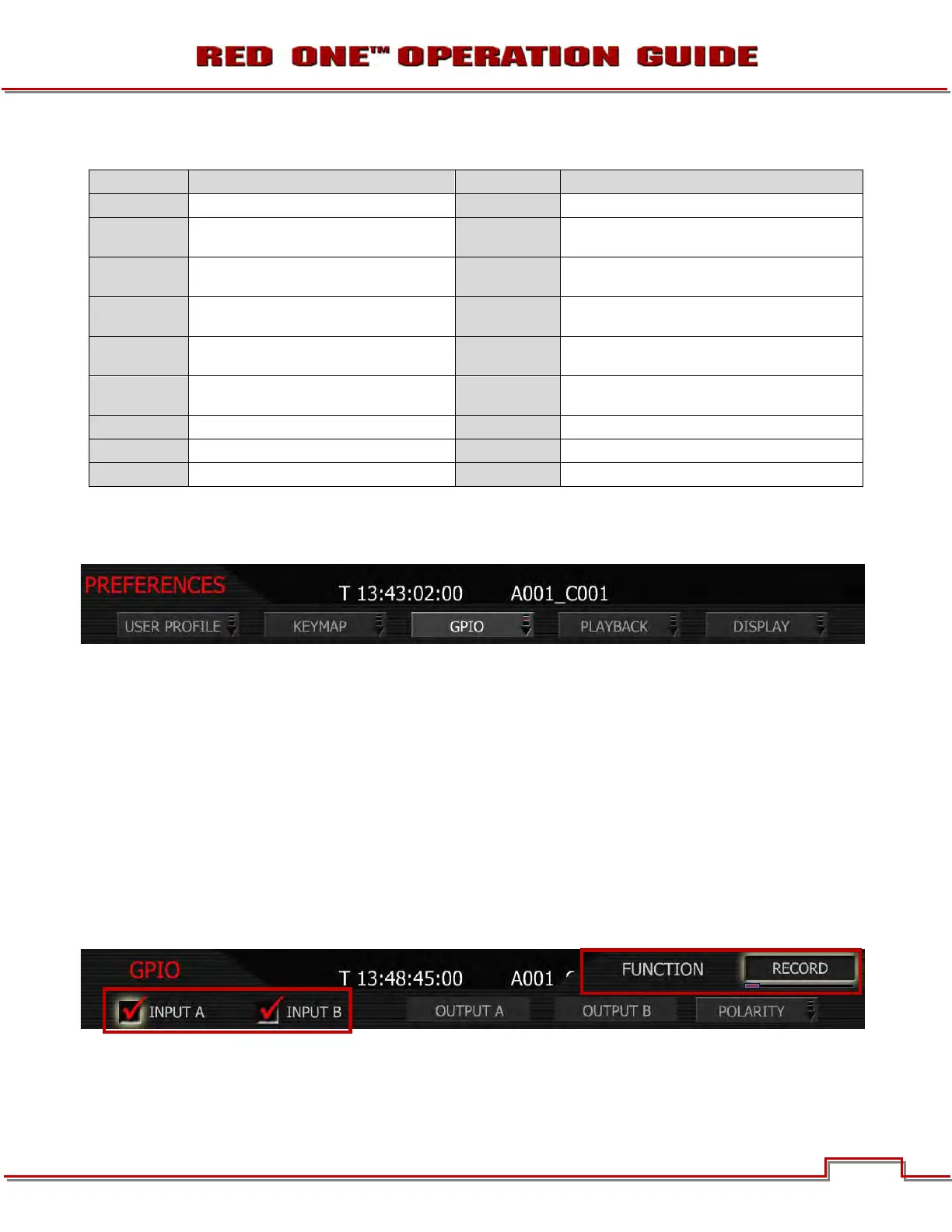 GPIO selects the GPIO preferences sub-menu.