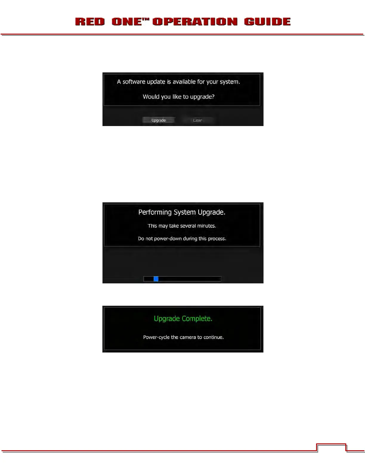 14. Cycle the camera OFF and back ON to return to normal operation. During the camera power up