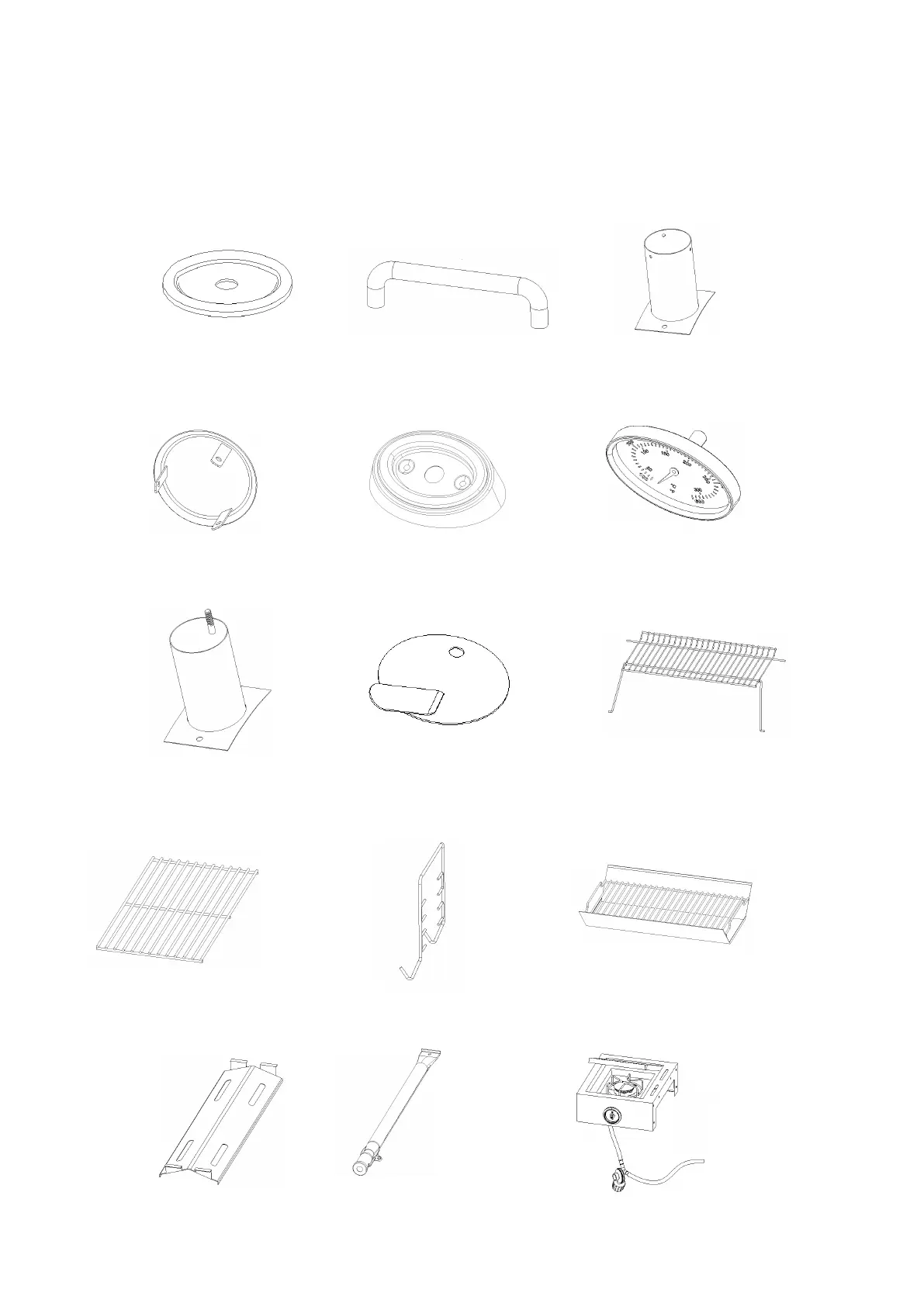 (10)Cooking Grate-4 pcs (11)Lifter-2pcs (12)Charcoal Panel-1pc
