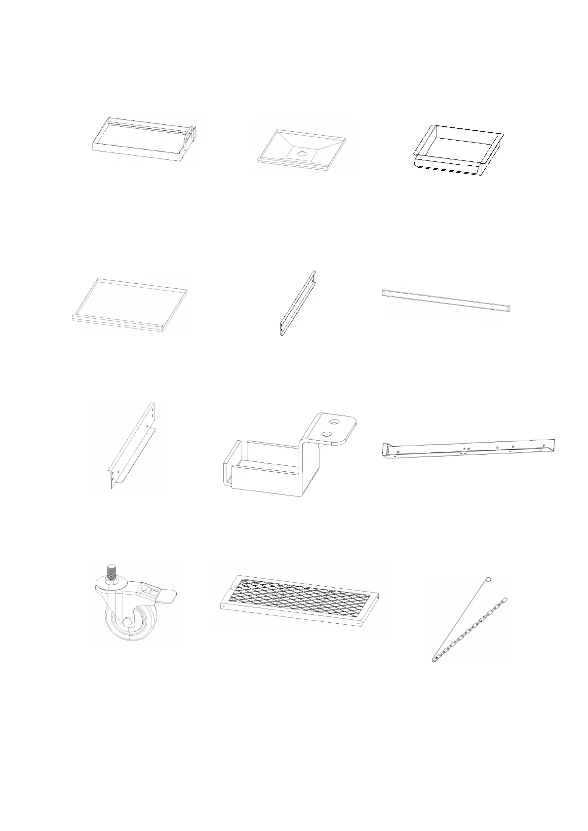 (28)Smoker Ash Pan-1pc (29)Drip Pan-1pc (30)Grease tray-1pc