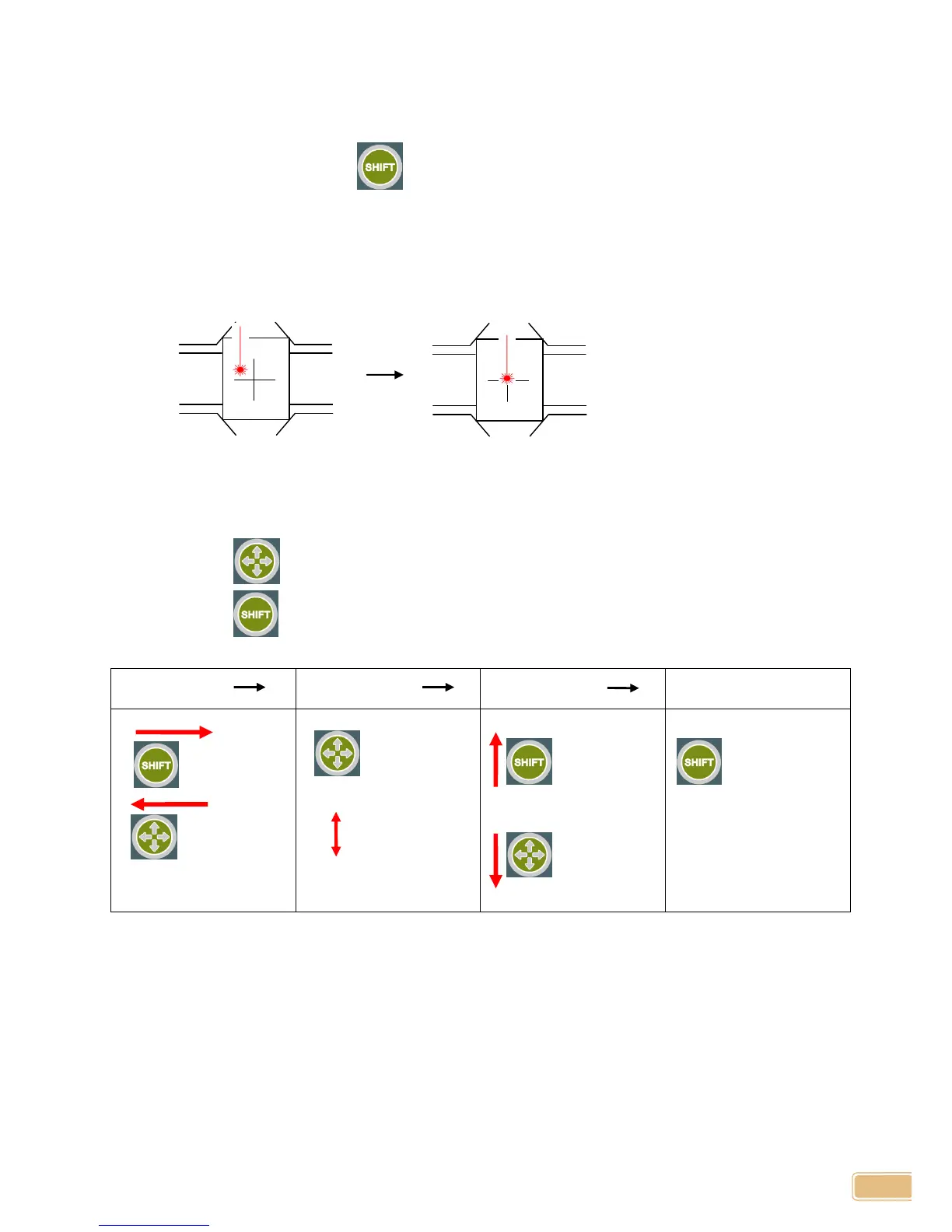 4. Move the red laser pointer to the center of the cross using button.