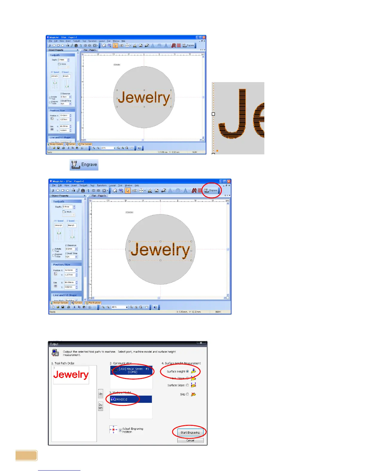 10. “Output” window is shown, appoint communication port and how to measure material and then, click Start