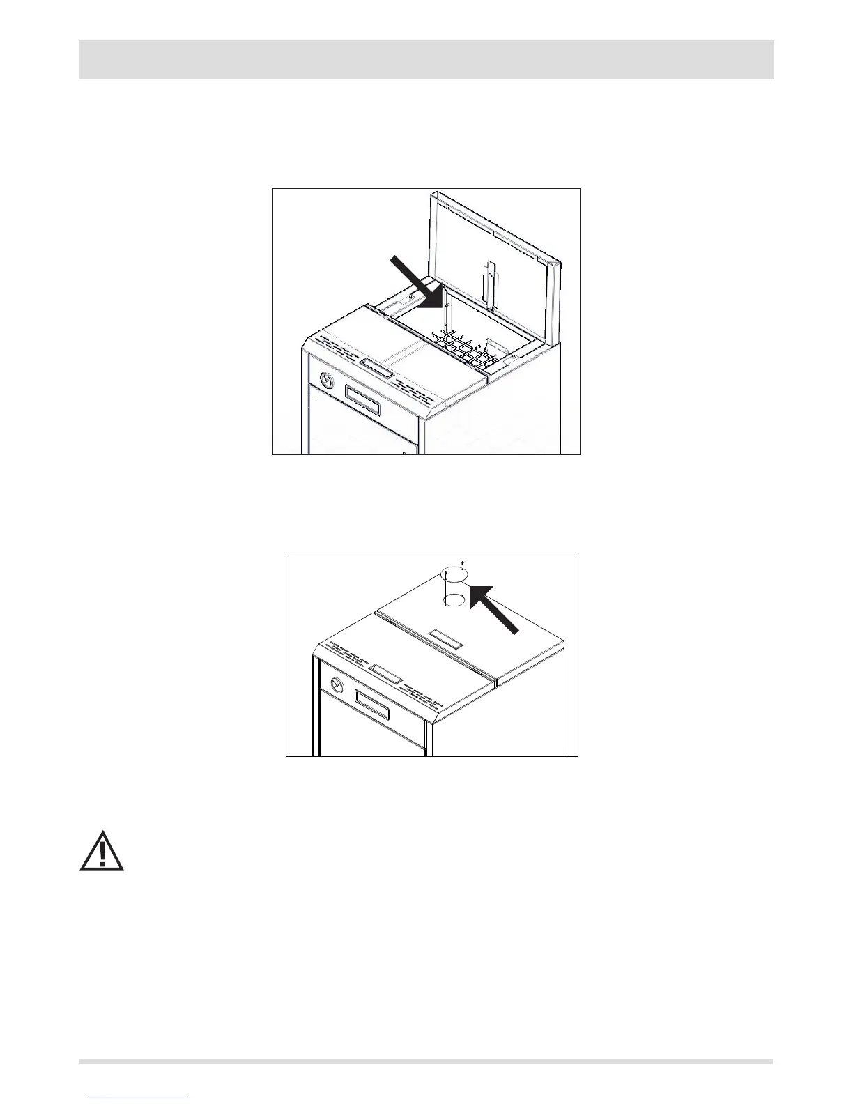 • Remove the round plate from the door, cut the insulation and insert the hopper pipe. Subsequently load from the optional hopper.