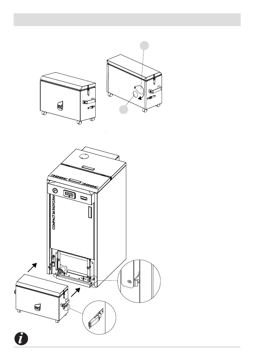 move the trolley towards the boiler and make sure the feed screw goes inside the trolley's hole “P