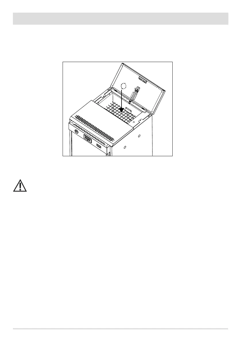 • Open the top cover of the boiler and pour in the pellets.