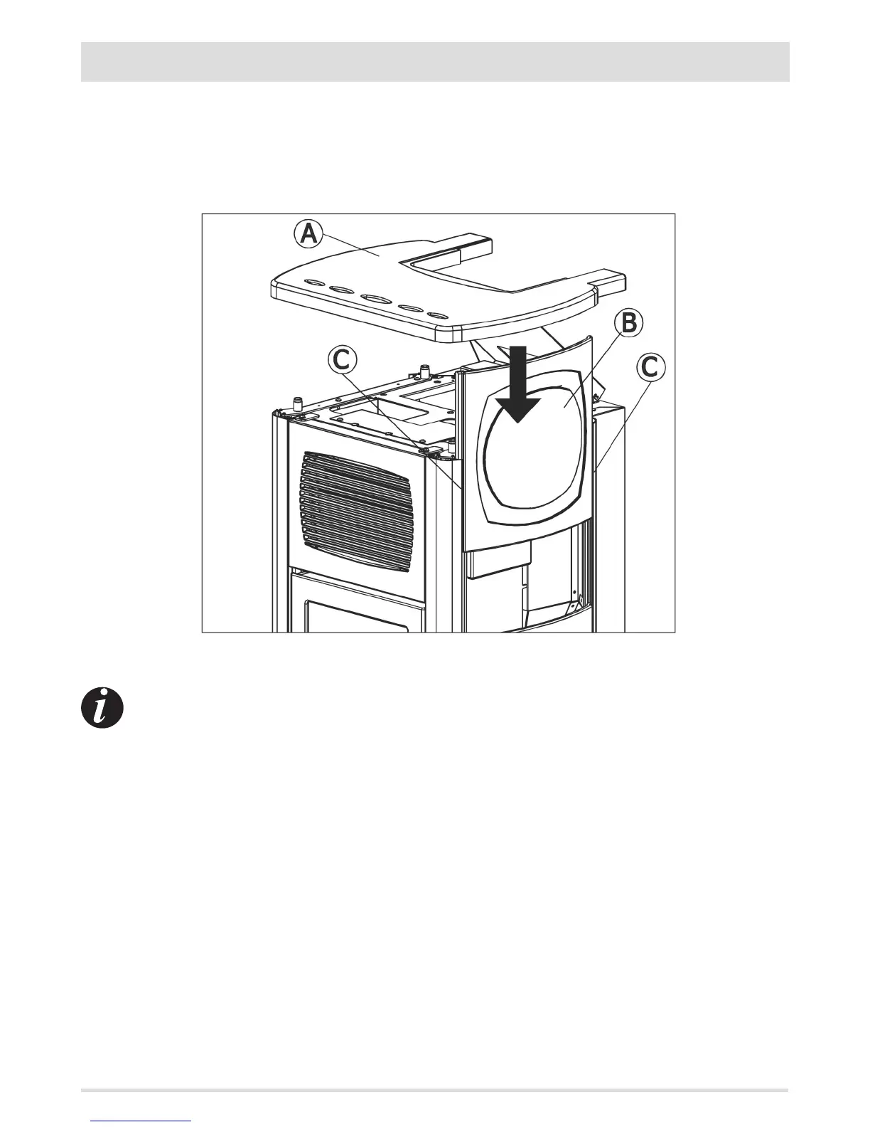 Take the six ceramics (B) from the box and insert them into the prole (C) where the guide is, from the top downwards. Repeat the same