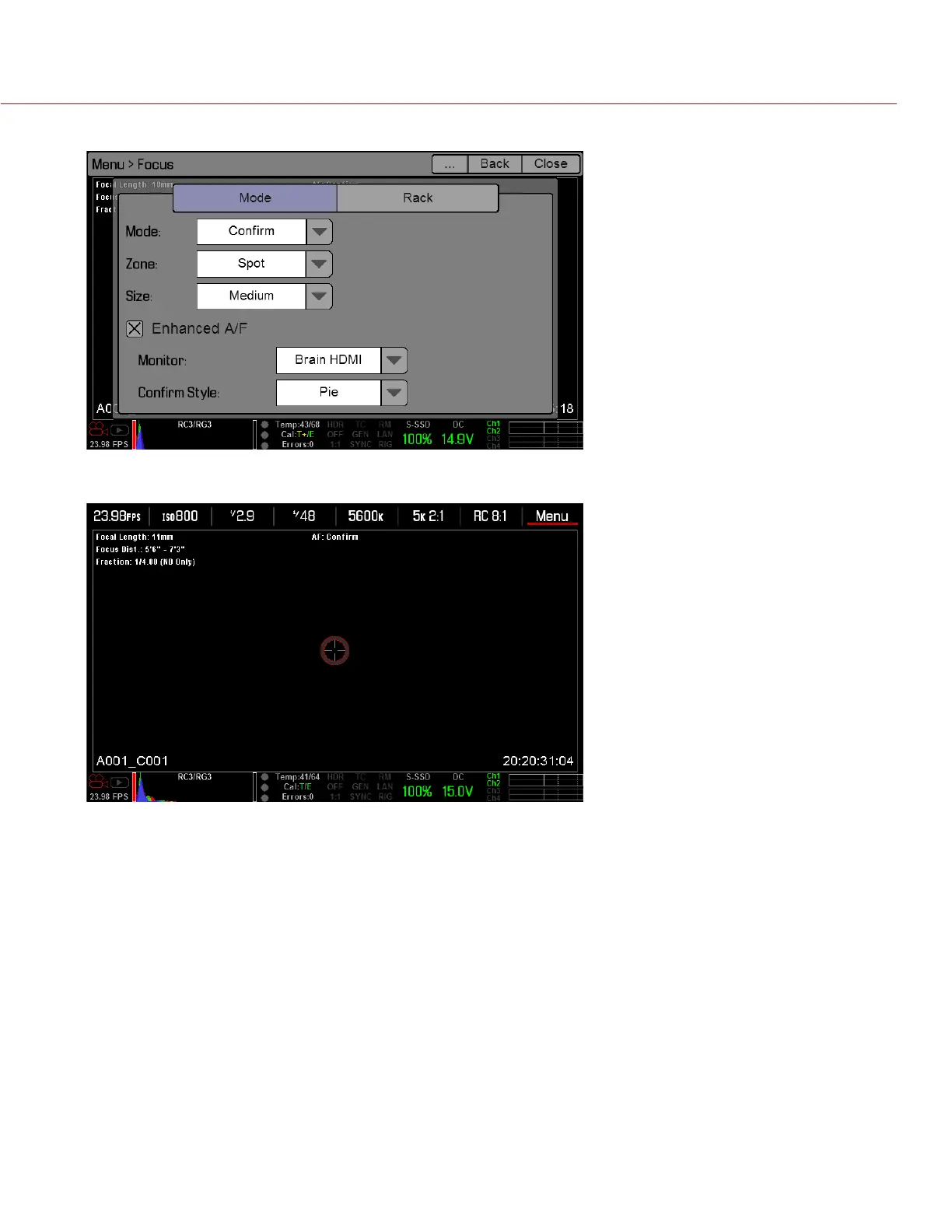 Use the Rack tab to configure up to four (4) focus points and execute rack focus between them.