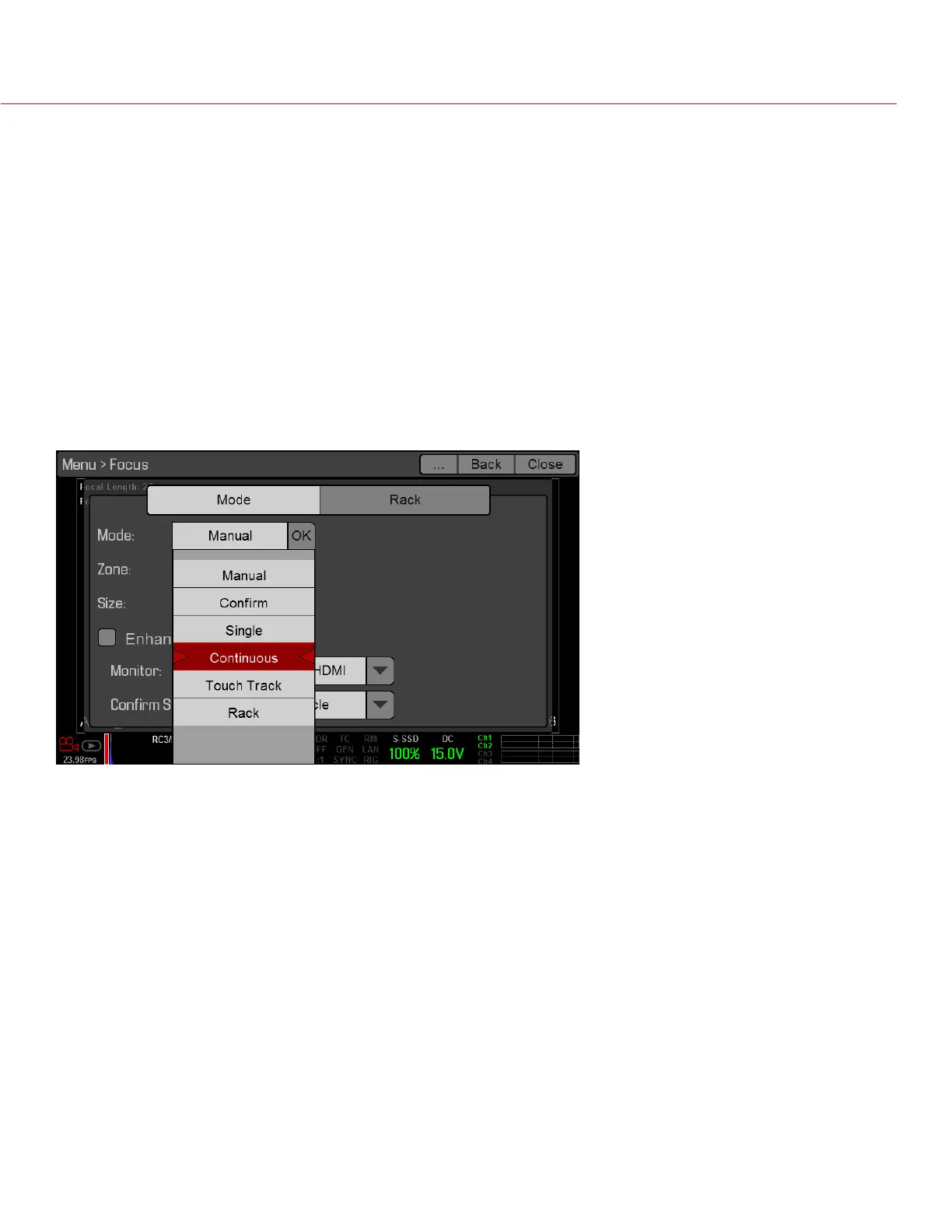 Rack: Enables rack focus. Only works with Spot zone. For more information, go to “Rack Focus” on page