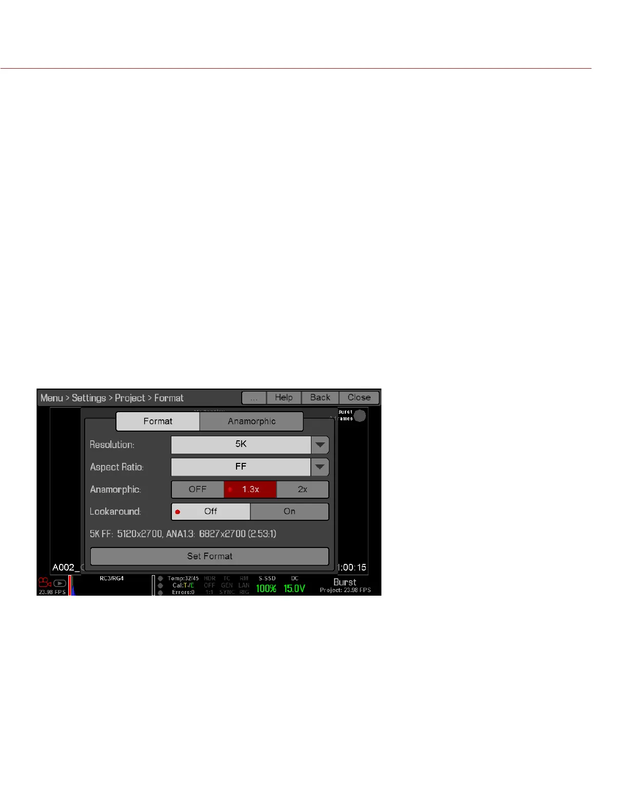 NOTE: Anamorphic de-squeeze on the RED PRO LCD 7.0" requires that your DSMC is on firmware v5.3 or later.