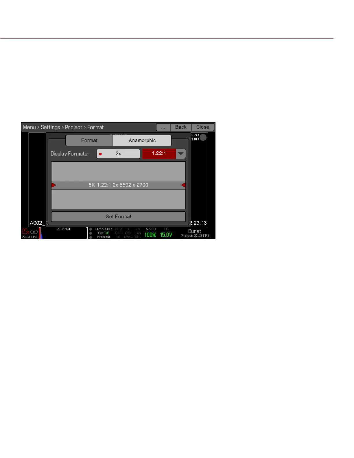 and non-anamorphic formats, go to Menu > Settings > Project > Format > Format.