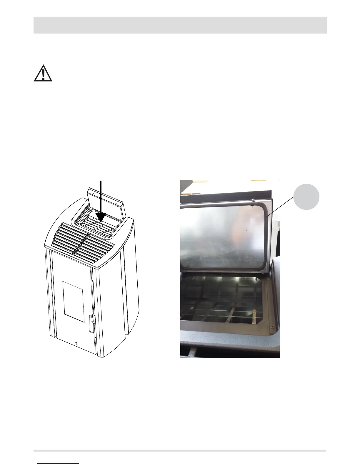 Fuel is loaded from the upper part of the stove by lifting the cover. Slowly pour the pellets into the hopper.