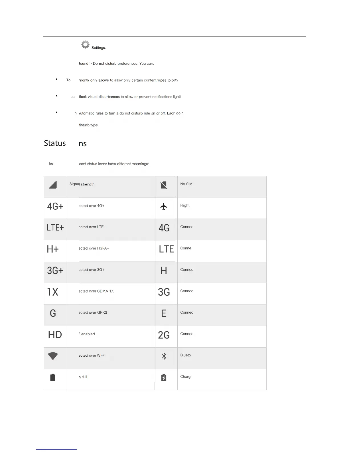 In the status bar, different status icons have different meanings: