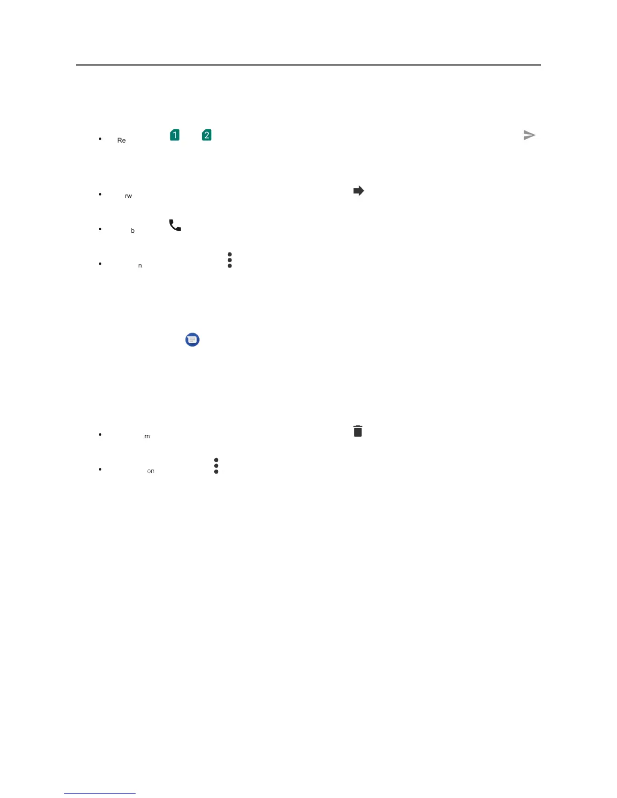 Reply: touch or to send the message from SIM card 1 or SIM card 2. If only one SIM card is inserted in the phone, touch