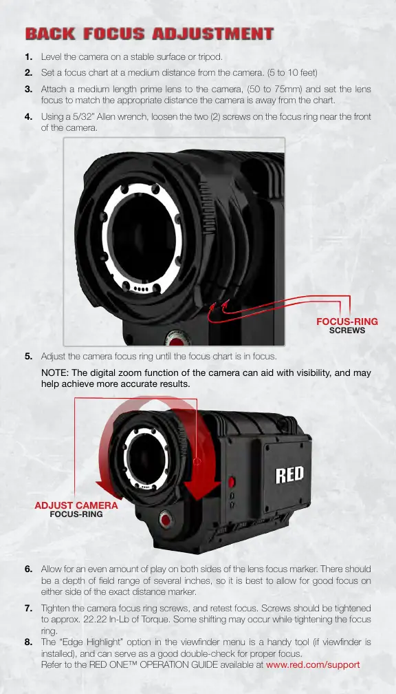 Refer to the RED ONE™ OPERATION GUIDE available at www.red.com/support