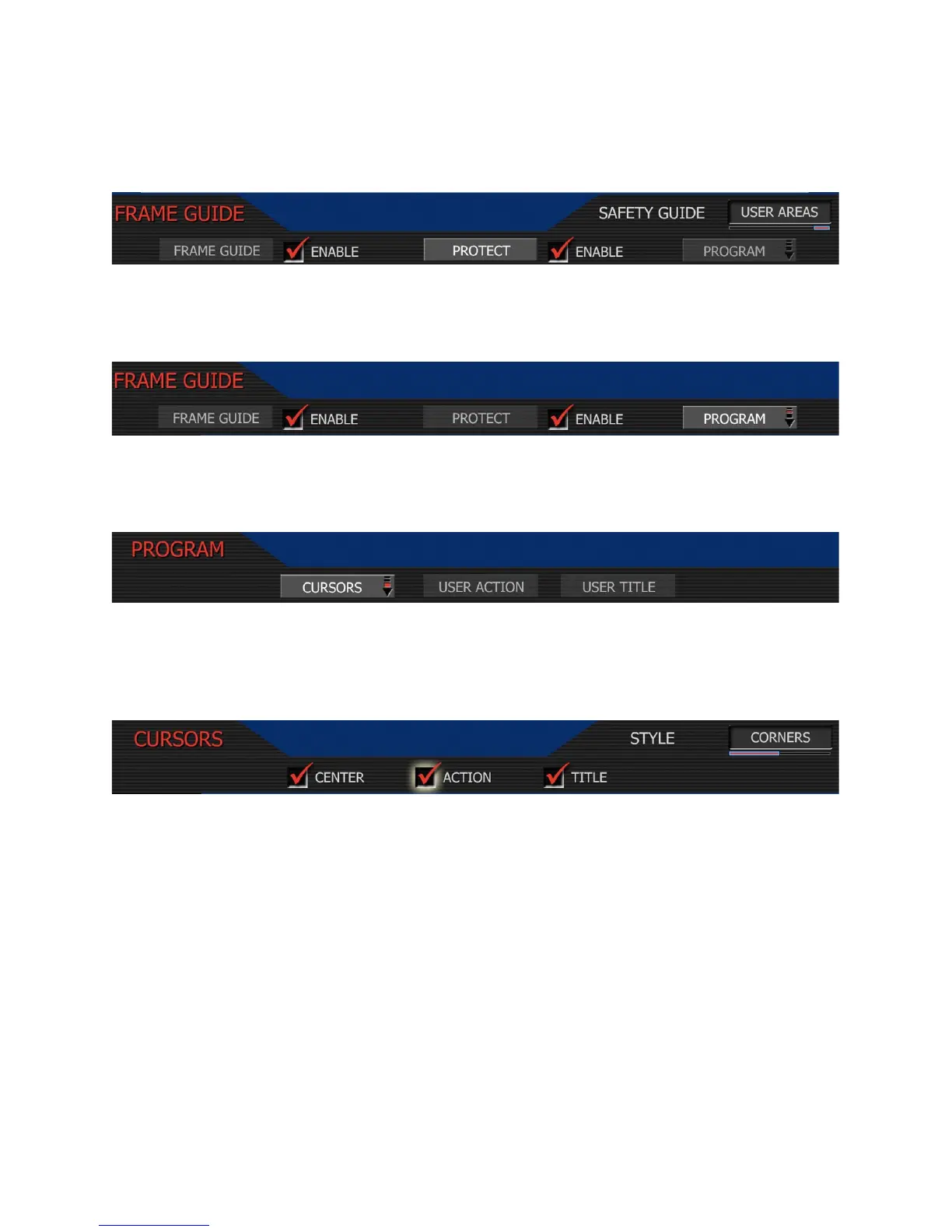Cursors: enables Center, Safe Action, Safe Title and Image Center cursors.