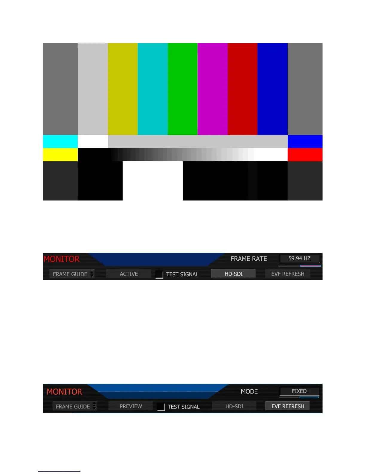Sets the1280 x 720p HD-SDI and HDMI monitor signal update rate to 50.00 or 59.94 Hz.