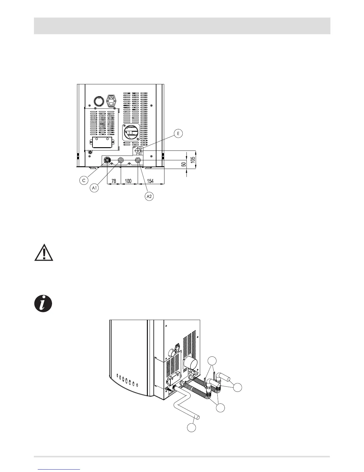 The pressure discharge valve (C) must always be connected to a water drain pipe. The pipe must be adequate to