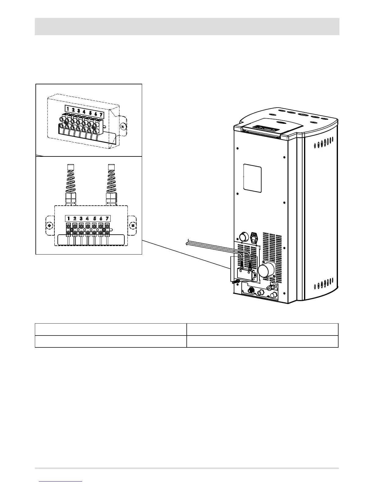 The temperature of the boiler can also be controlled by an external room thermostat. It is located in a central position of the room where