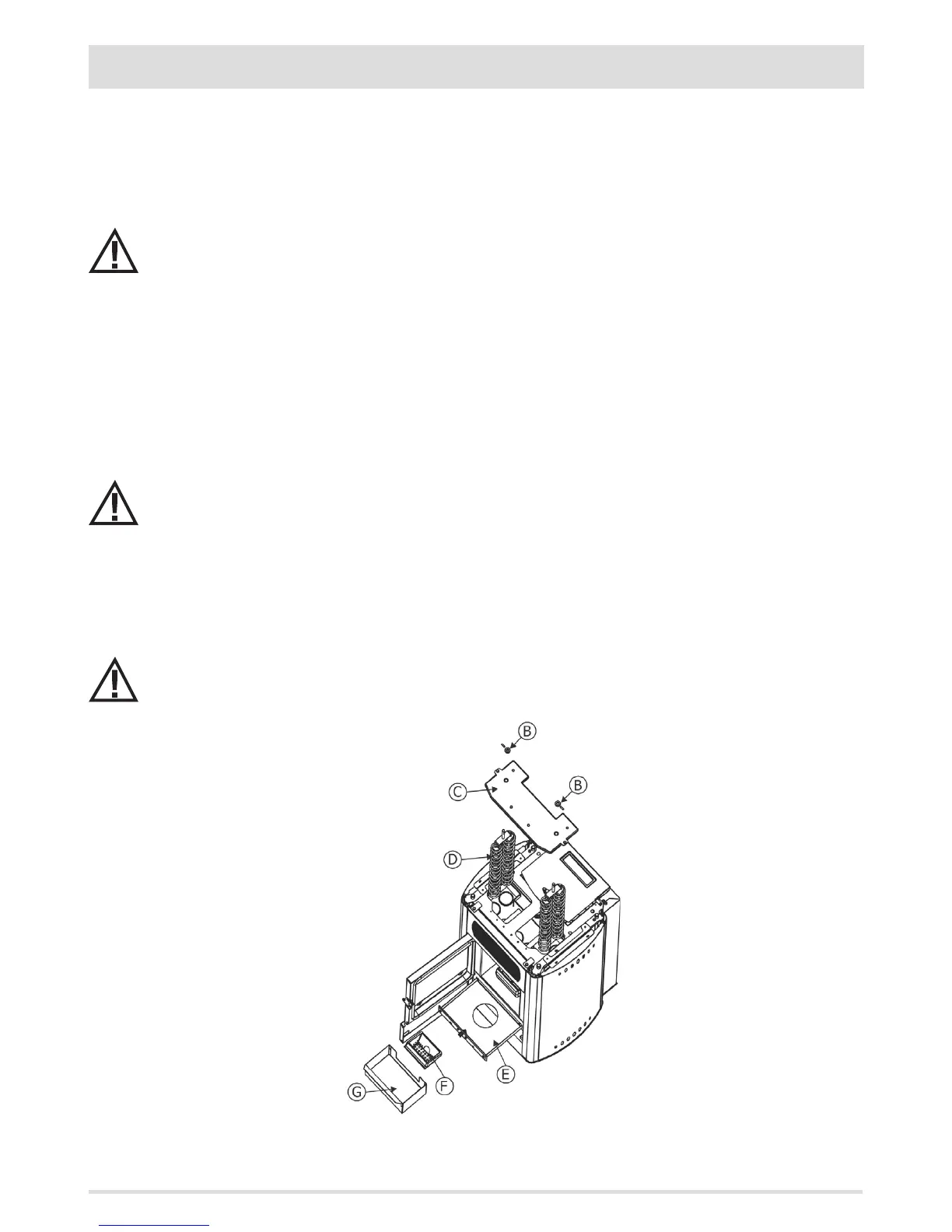 drawer “G”. Remove the brazier “F” and clean it every 2/3 days.