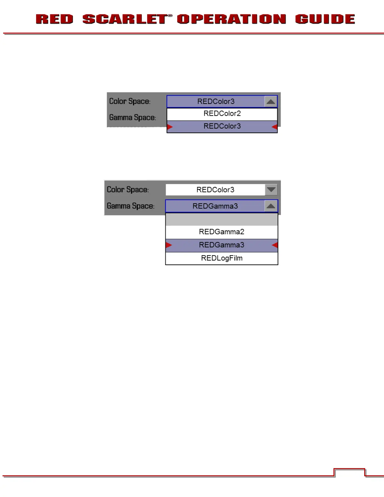 The COLOR/GAMMA sub-menu permits adjustment of the monitor output Color Space and Gamma