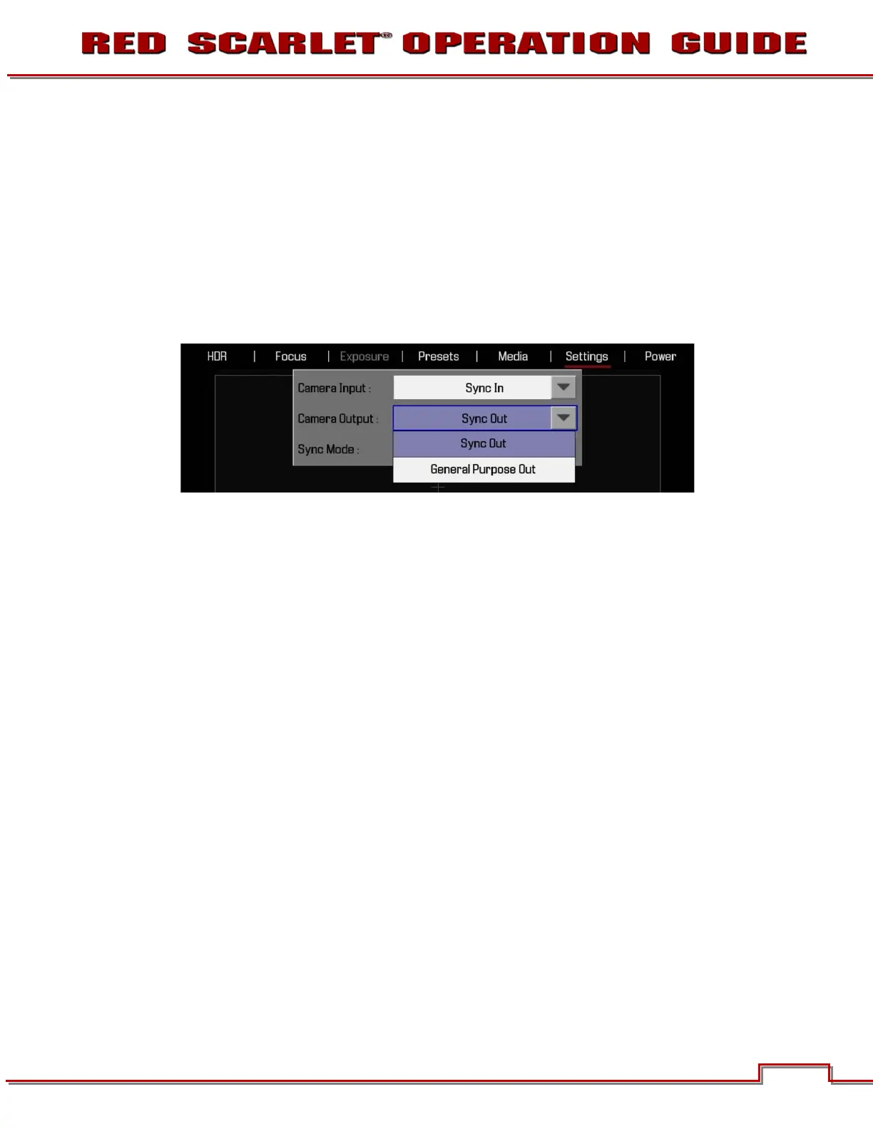 Provides an Output Sync signal to act as a Shutter Start tally.