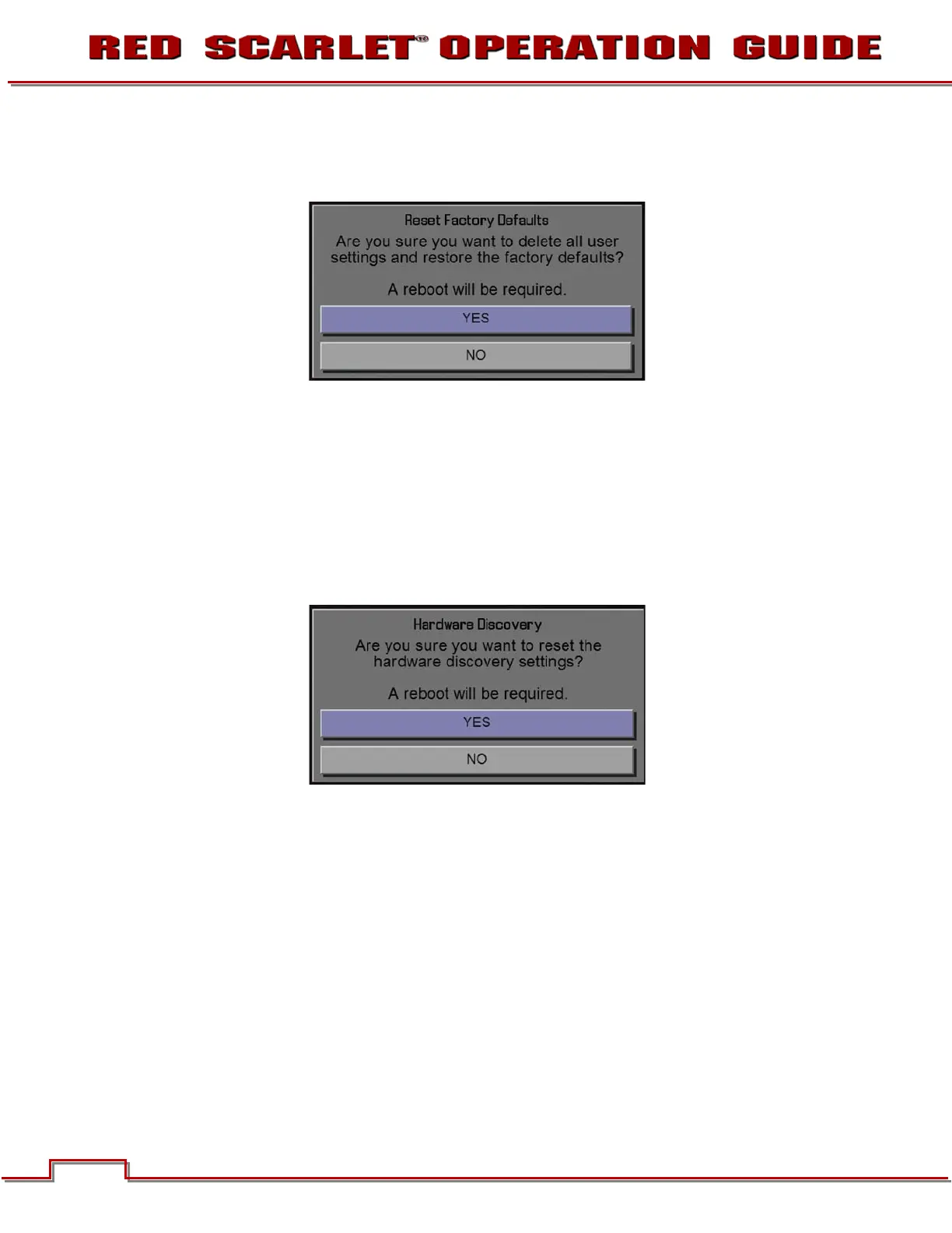 settings are reset, “RESET HARDWARE DISCOVERY SUCCESSFUL, INITIALIZING RESTART…”