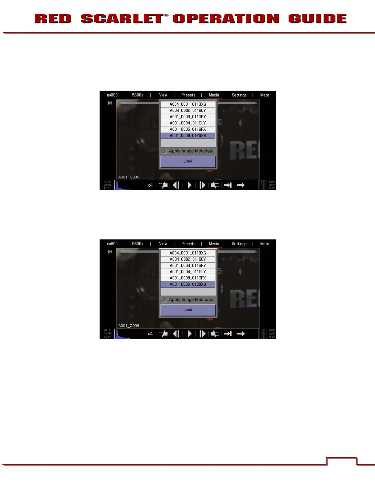 2. Load will highlight. Select LOAD to load the clip in the player and allow playback.