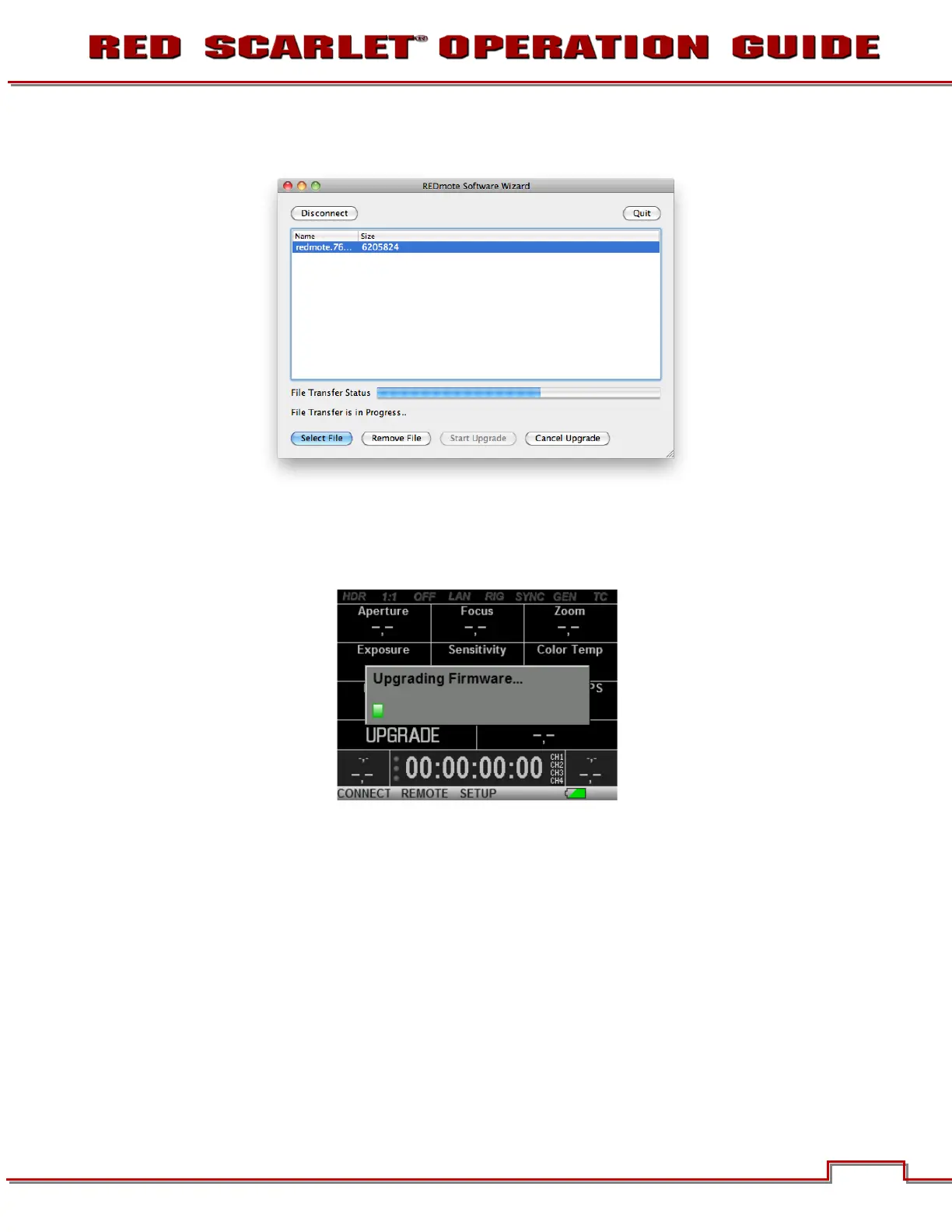 11. “Updating Firmware” will be displayed with a Green status bar showing upgrade progress.