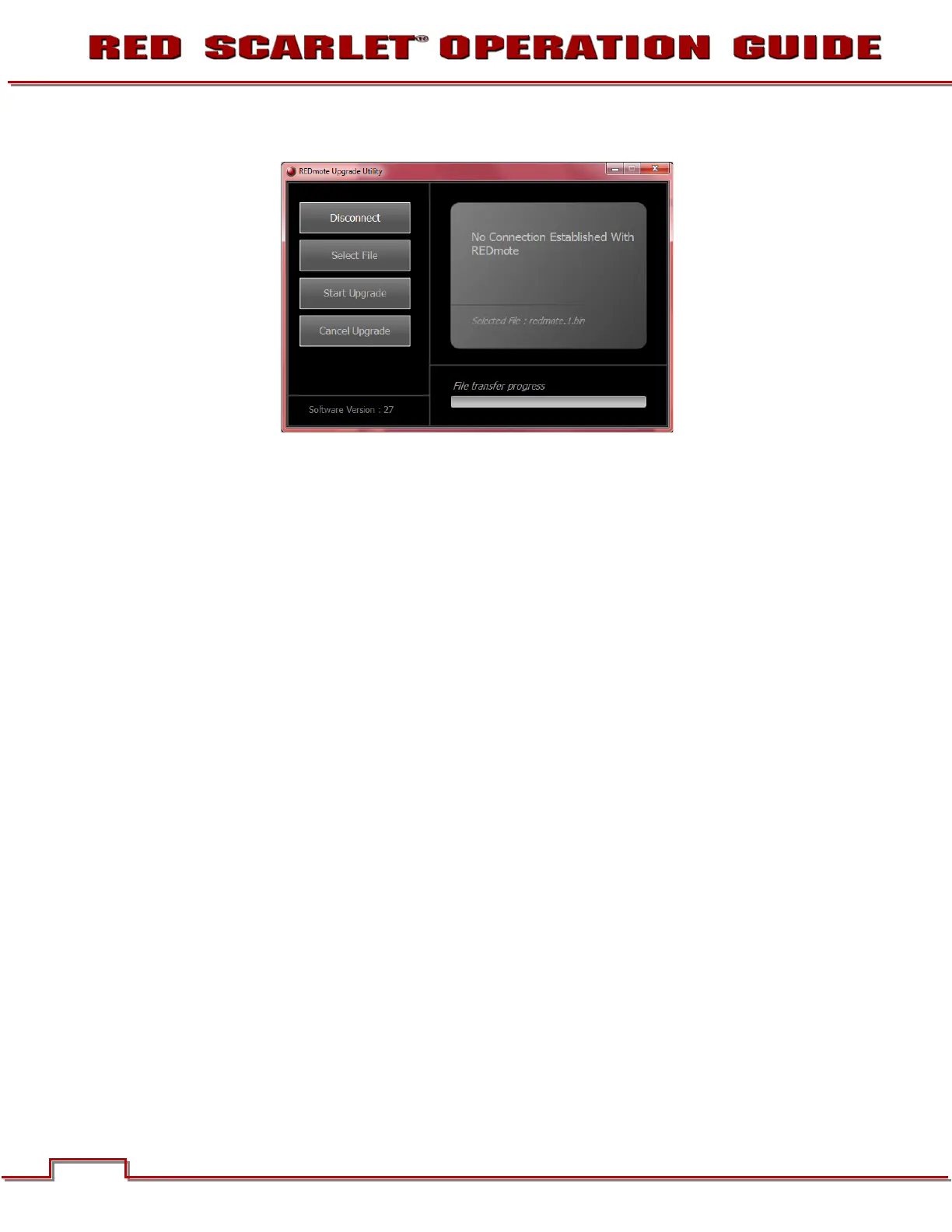 16. Select “Disconnect” on the REDMOTE Upgrade Utility.