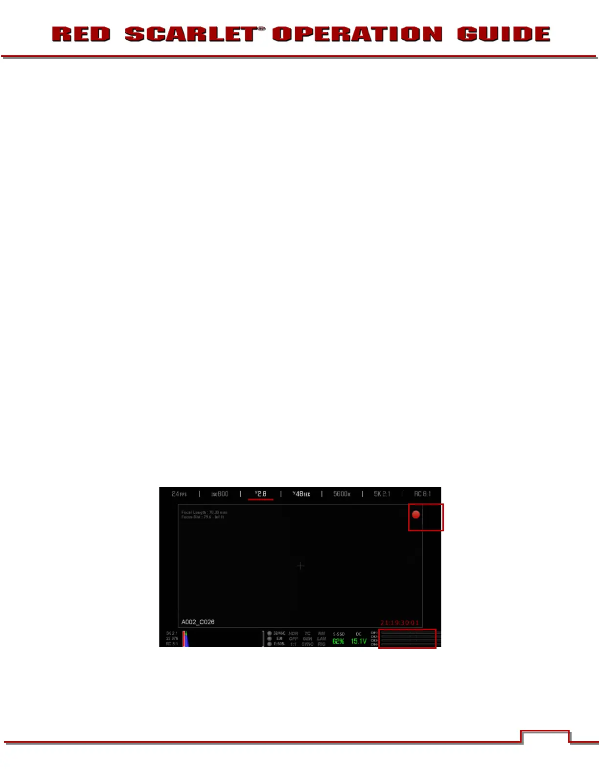 When recording, the RED DSMC camera provides a variety of record indications (tallies):