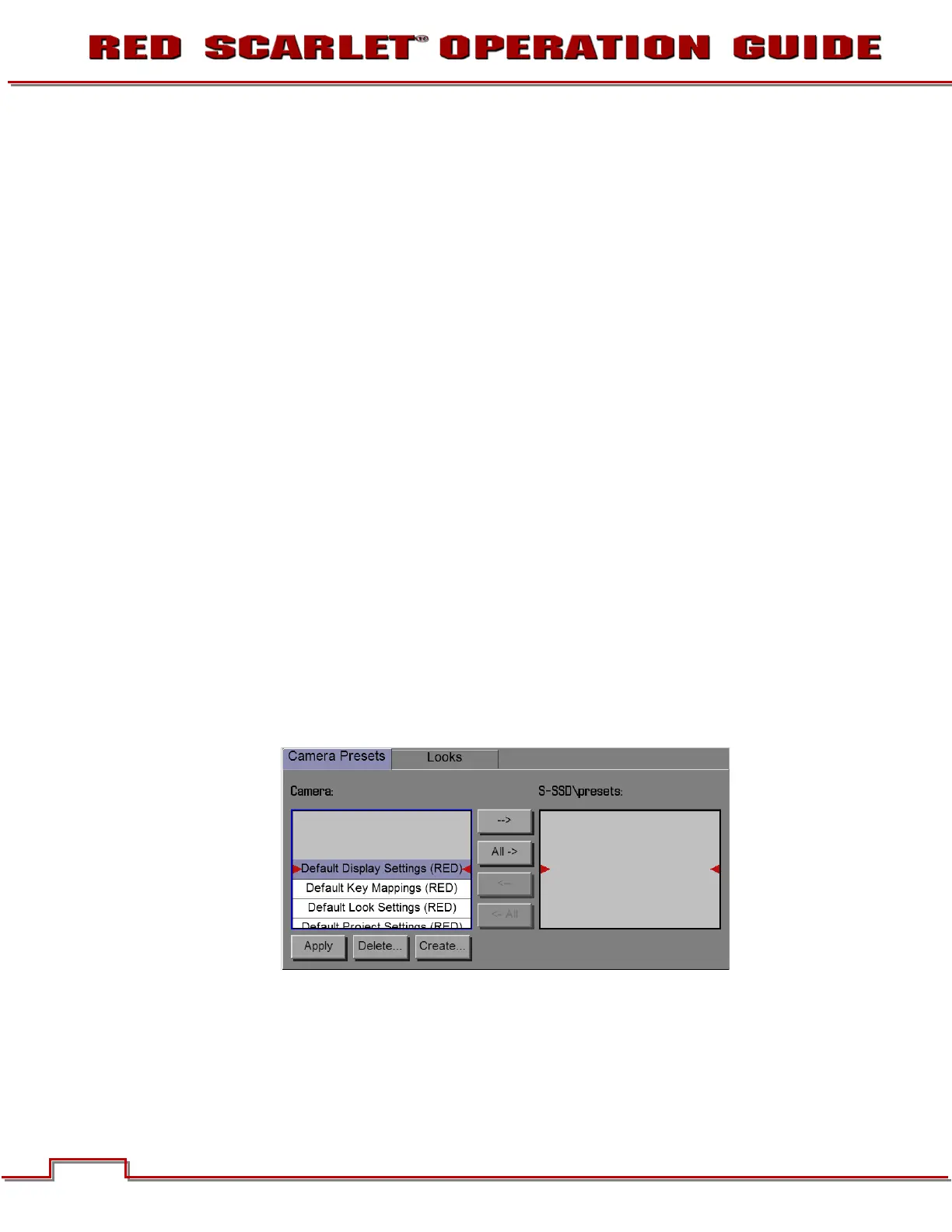 Presets can also be saved on an SSD and applied to other RED DSMC cameras.