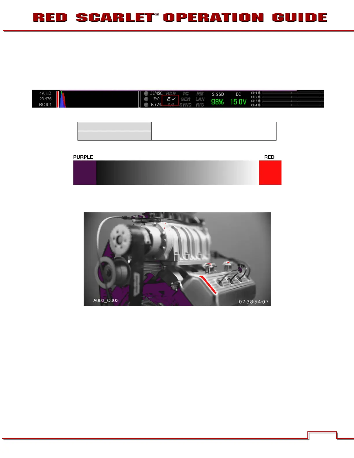 postproduction. Red areas represent sensor exposure levels that are at clipping.