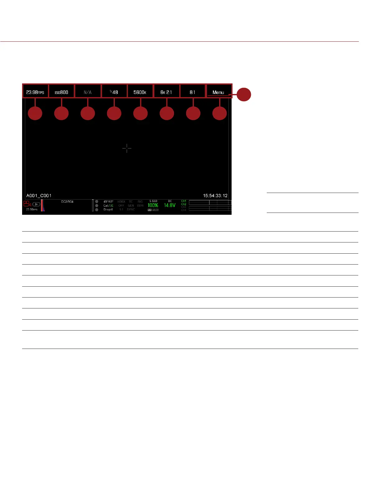 Row is underlined with a red bar. The Upper Status Row is also known as the Basic Menu.