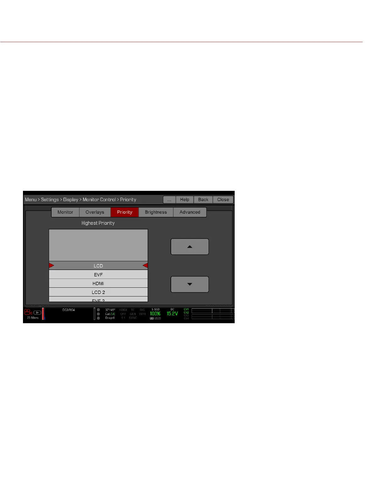 The camera can only have one (1) control monitor for interacting with camera settings. The Priority tab determines