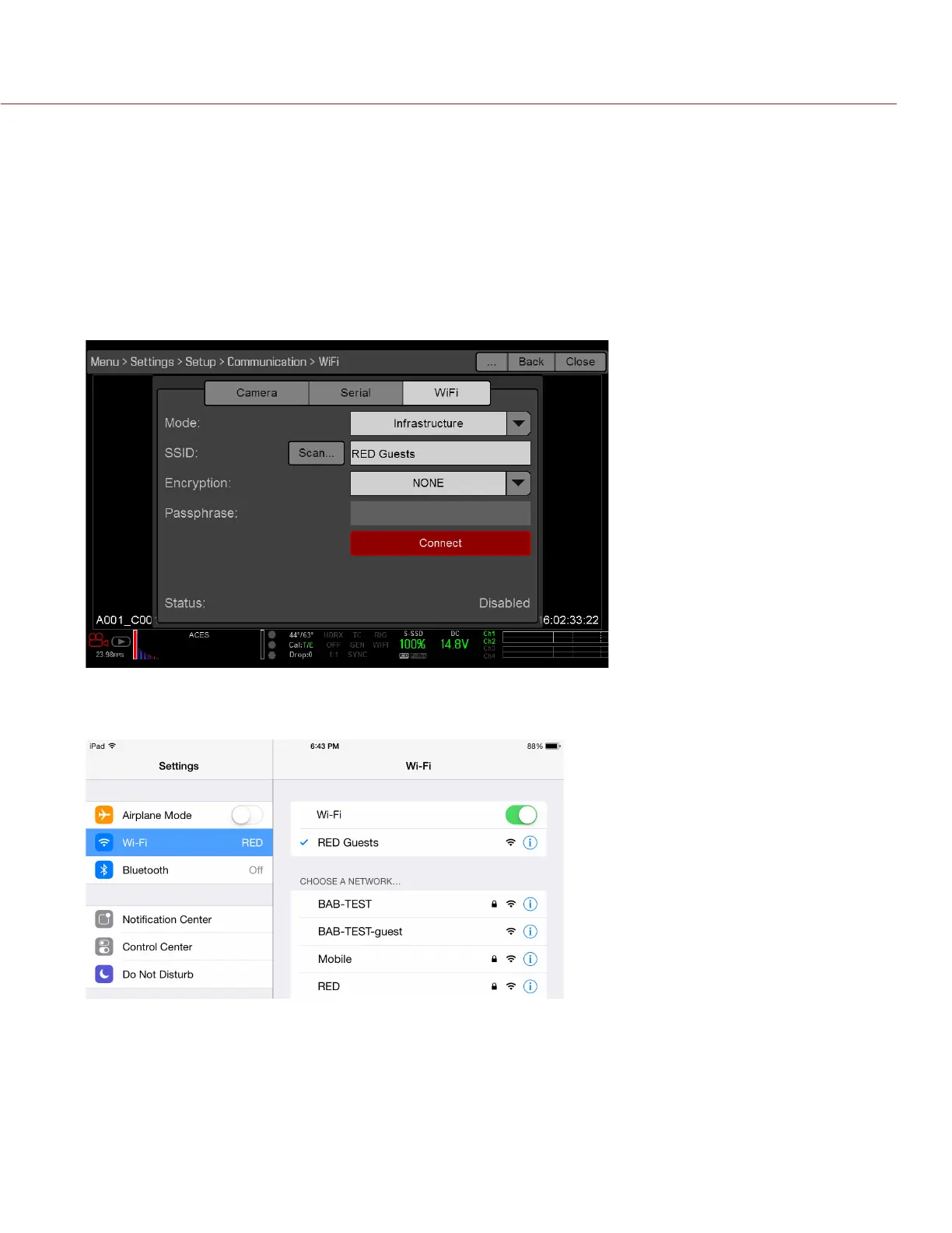 connecting an iOS device, go to Settings > Wi-Fi, and select the wireless network.